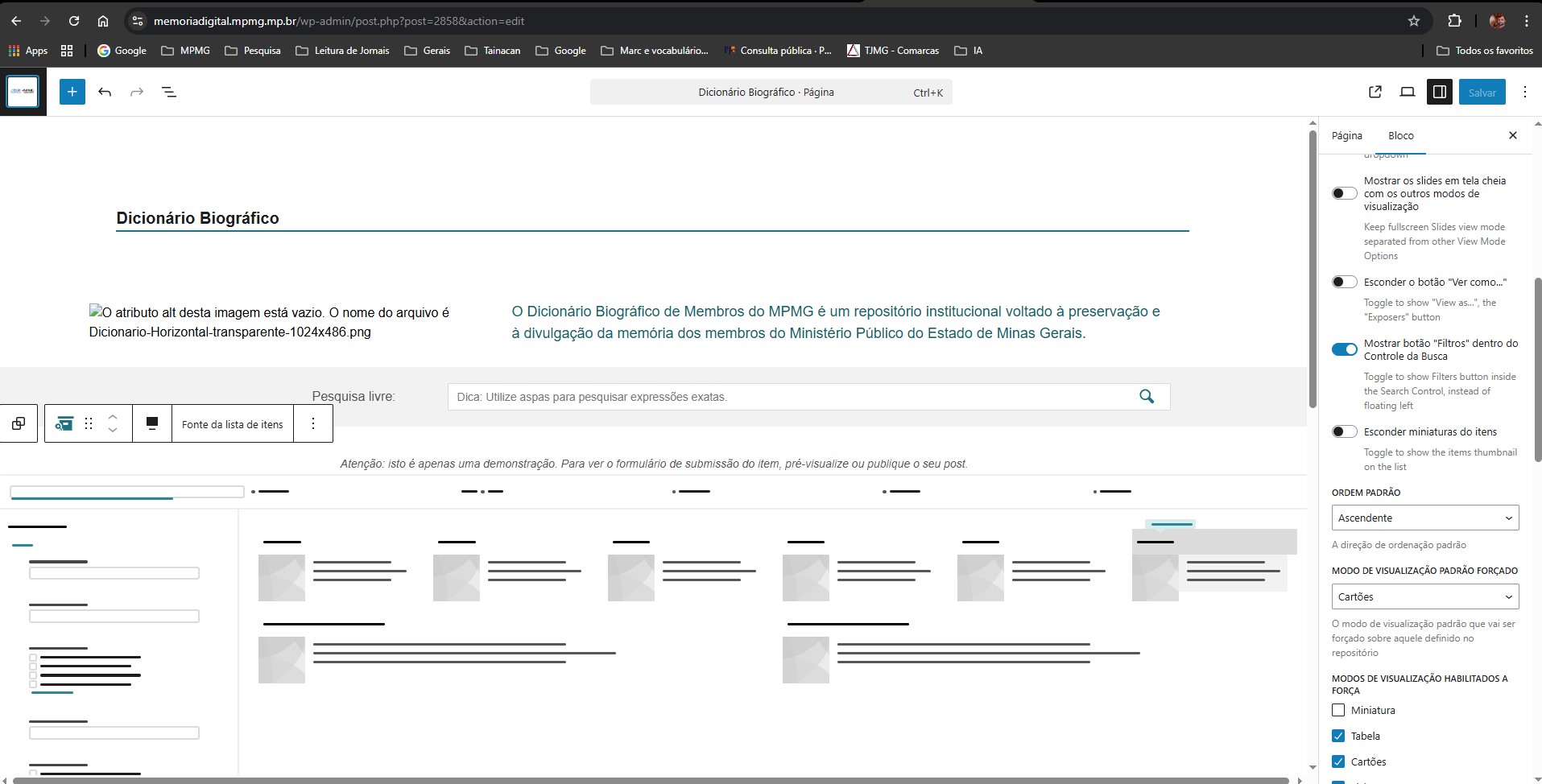 Em um dos nossos posts pré-lançamento nós mencionamos que esta opção estará disponível em “Tainacan” → “Configurações” → "Opções padrão de lista de itens no tema”:
